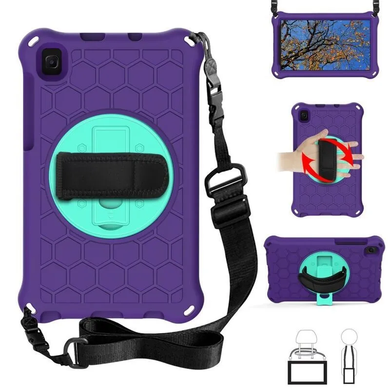 Méz hibrid tartós borító pánttal és kéztartóval Samsung Galaxy Tab A7 Lite 8.7 T220/T225 táblagéphez - lila/cián színű