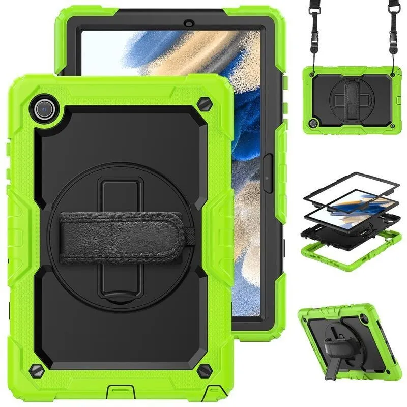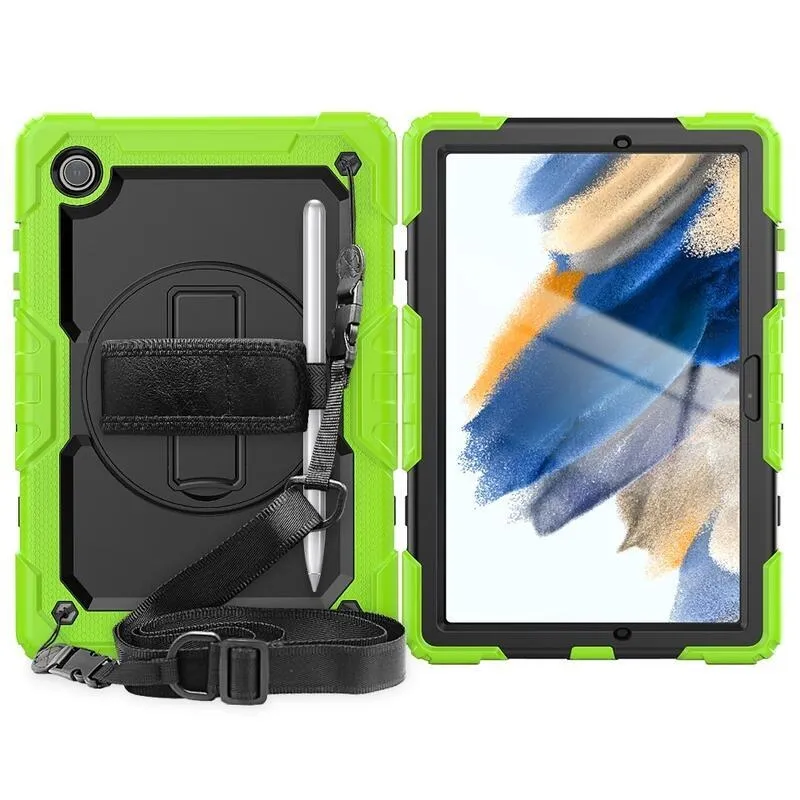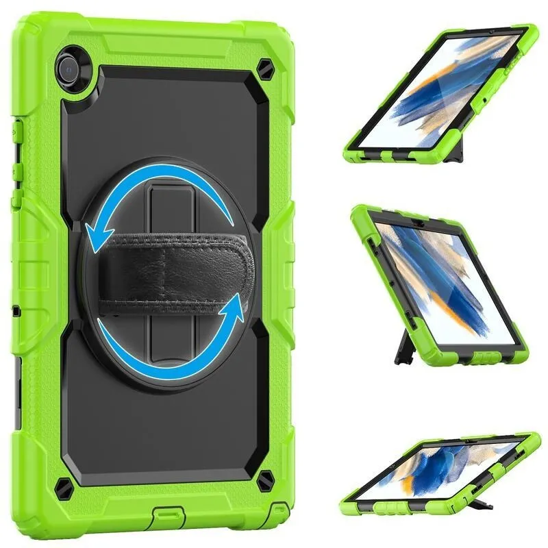Méz hibrid tartós borító pánttal és kéztartóval Samsung Galaxy Tab A8 10.5 (2021) - fekete/zöld