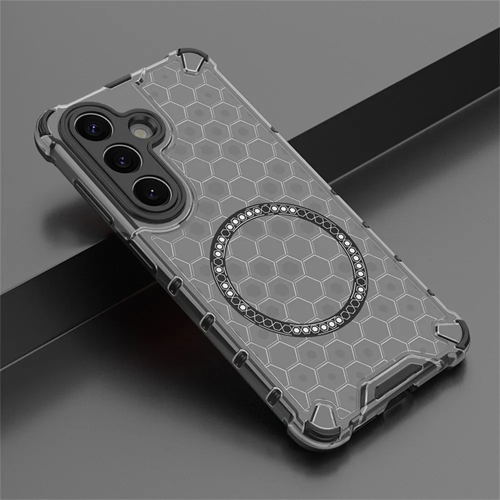 ✅【TPU + PC hibrid konstrukció】 Mézszínű, tartós tok MagSafe támogatással Samsung Galaxy S26/S26 Pro készülékhez, szürke színben. TPU és PC anyagok kombinációjából készült, tökéletes egyensúlyt biztosítva a puhaság és a keménység között, optimális védelmet biztosítva a telefonnak.