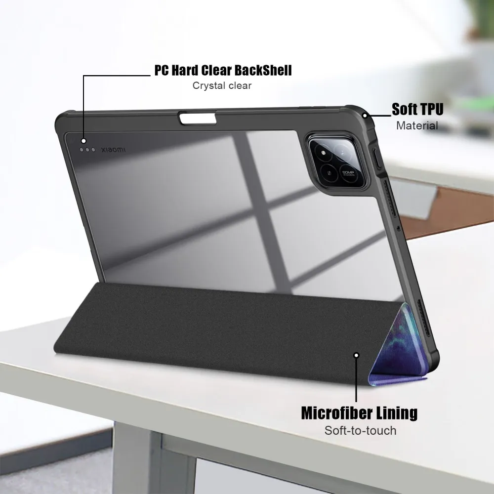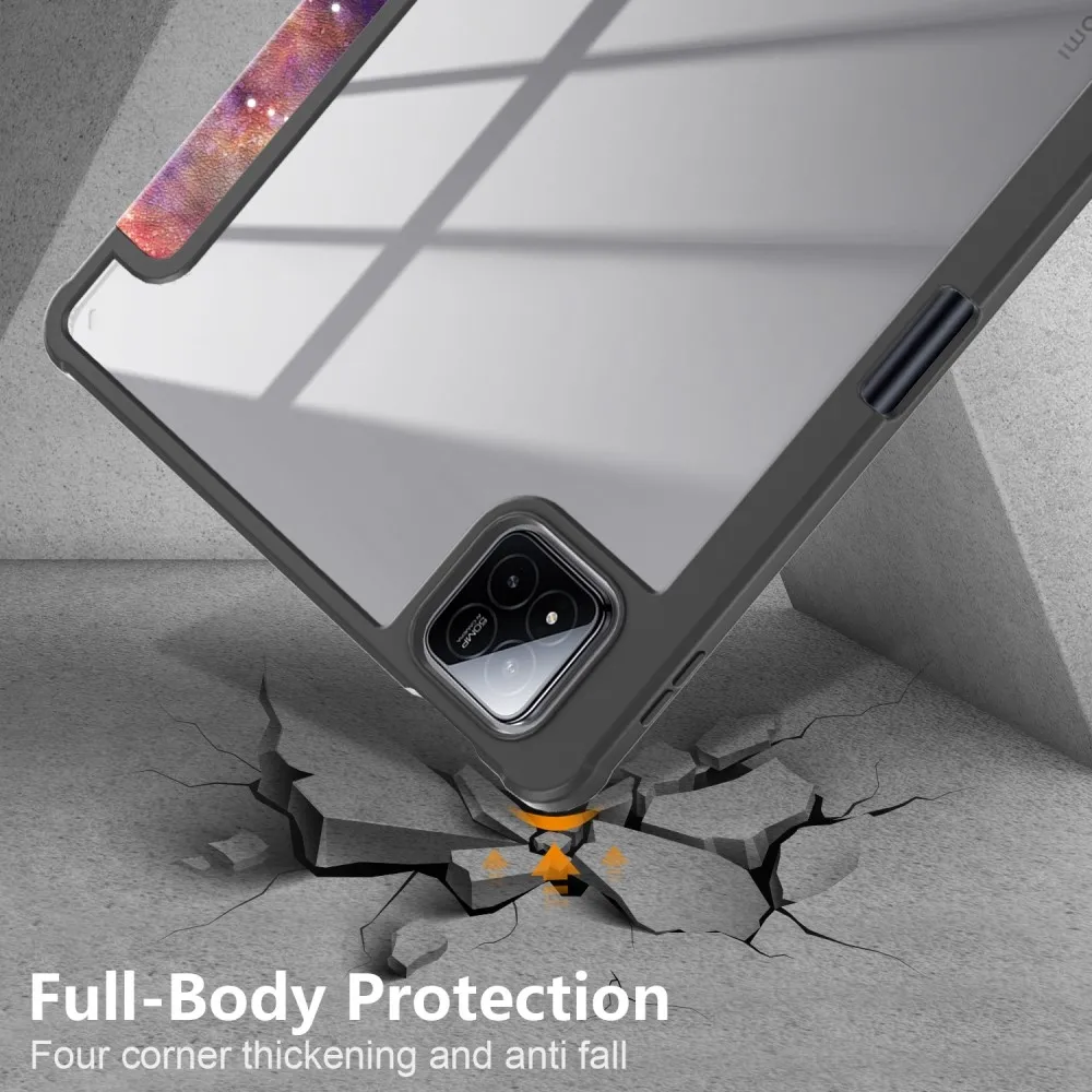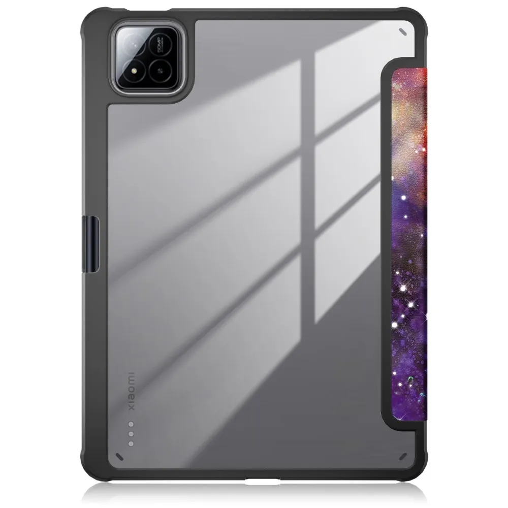 Intelligens pozicionáló tok mintás átlátszó hátlappal Xiaomi Pad 7/7 Pro tablethez és űr témához