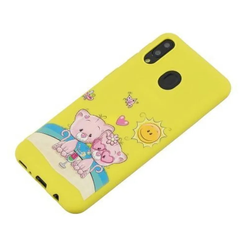 Mintás matt zselés tok Samsung Galaxy M20-hoz - sárga / medve
