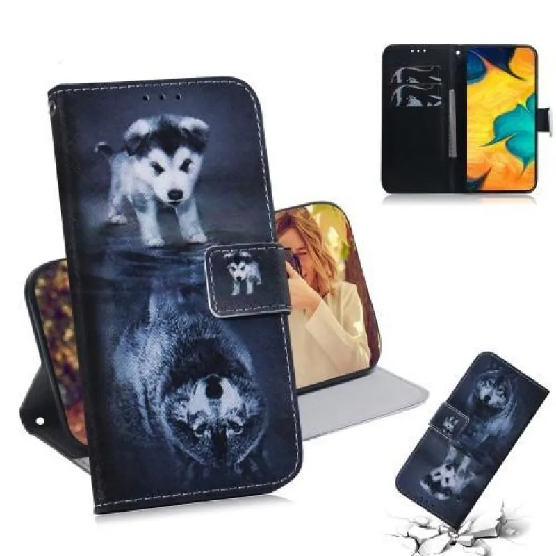 Mintás PU bőr pénztárca tok Samsung Galaxy A30 / A20 - kutya
