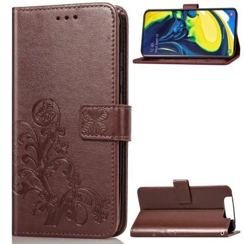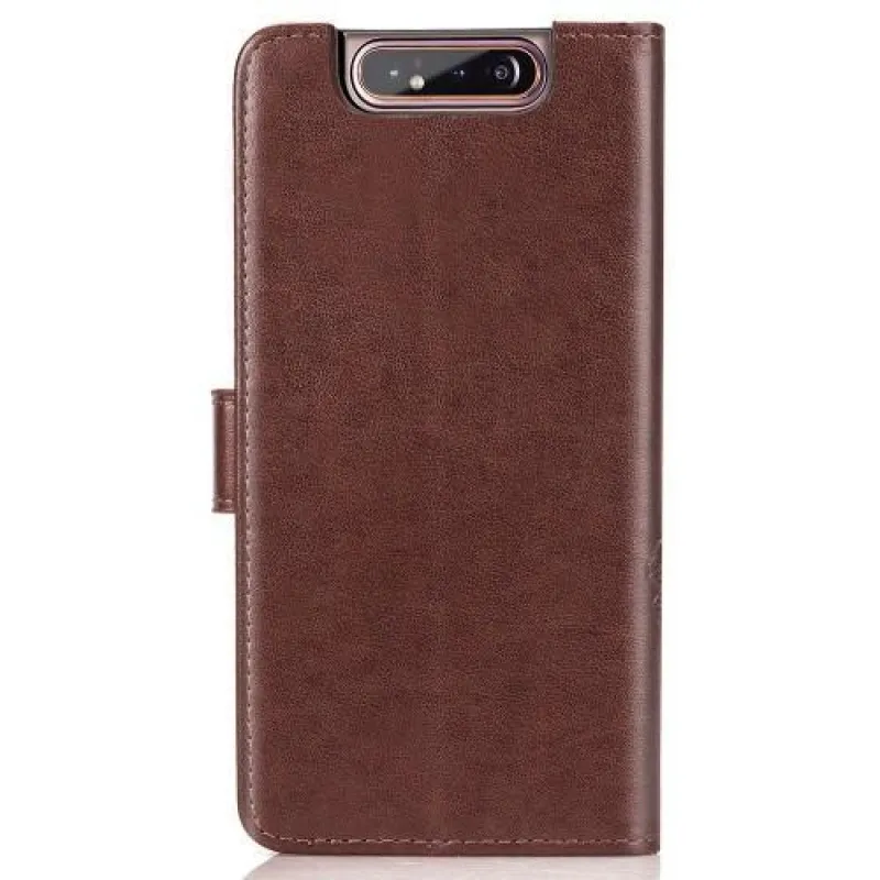 Mintás PU bőr pénztárca tok Samsung Galaxy A80-hoz - barna