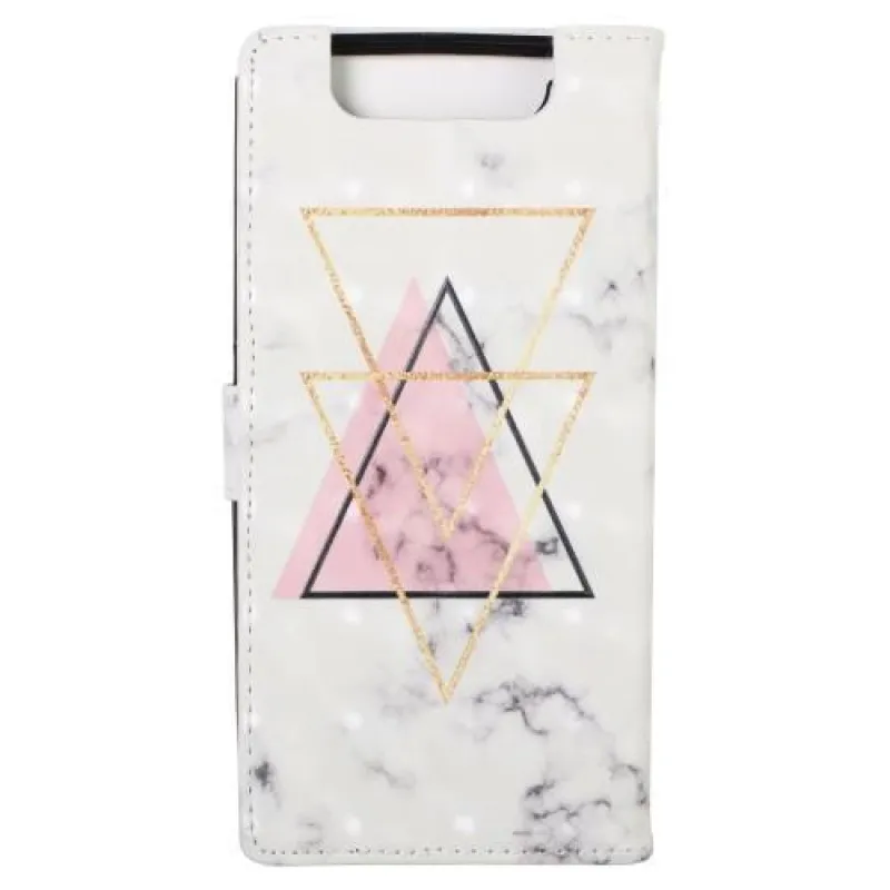 Mintás PU bőr pénztárca tok Samsung Galaxy A80-hoz - háromszög alakú
