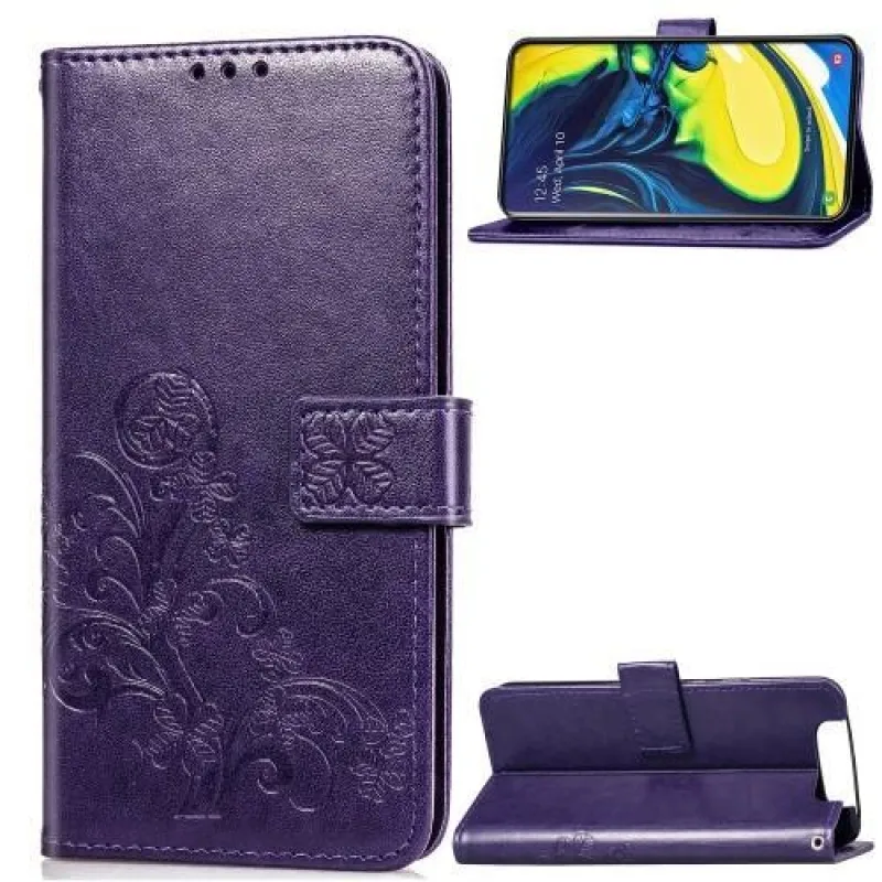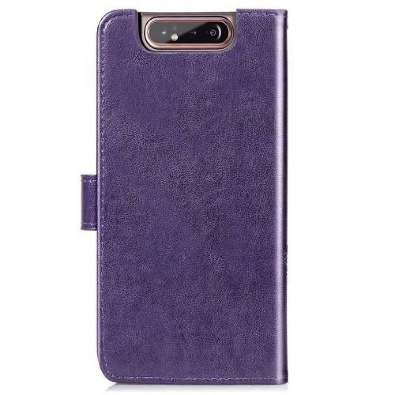 Mintás PU bőr pénztárca tok Samsung Galaxy A80-hoz - lila