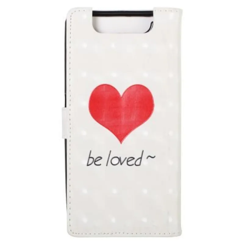 Mintás PU bőr pénztárca tok Samsung Galaxy A80-hoz - piros szívecske