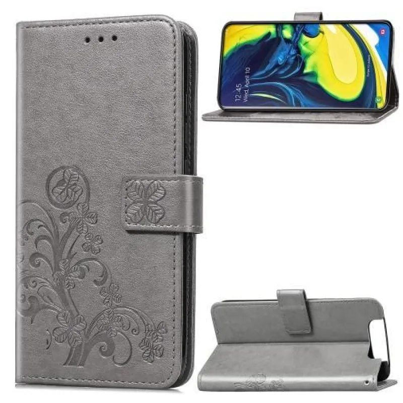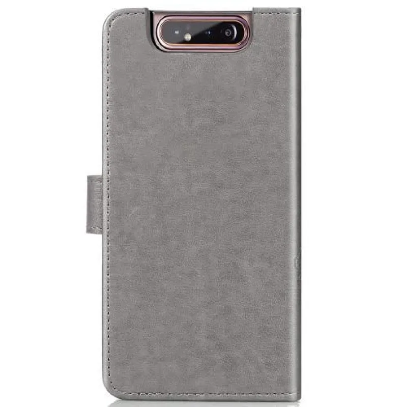 Mintás PU bőr pénztárca tok Samsung Galaxy A80-hoz - szürke