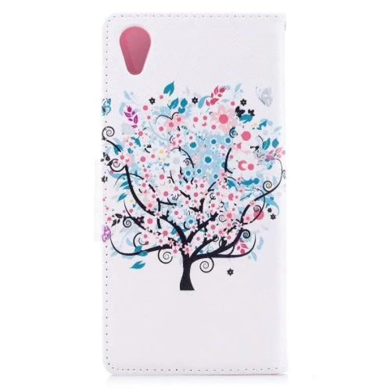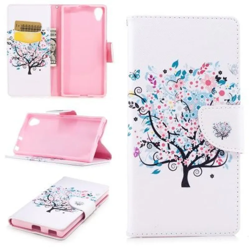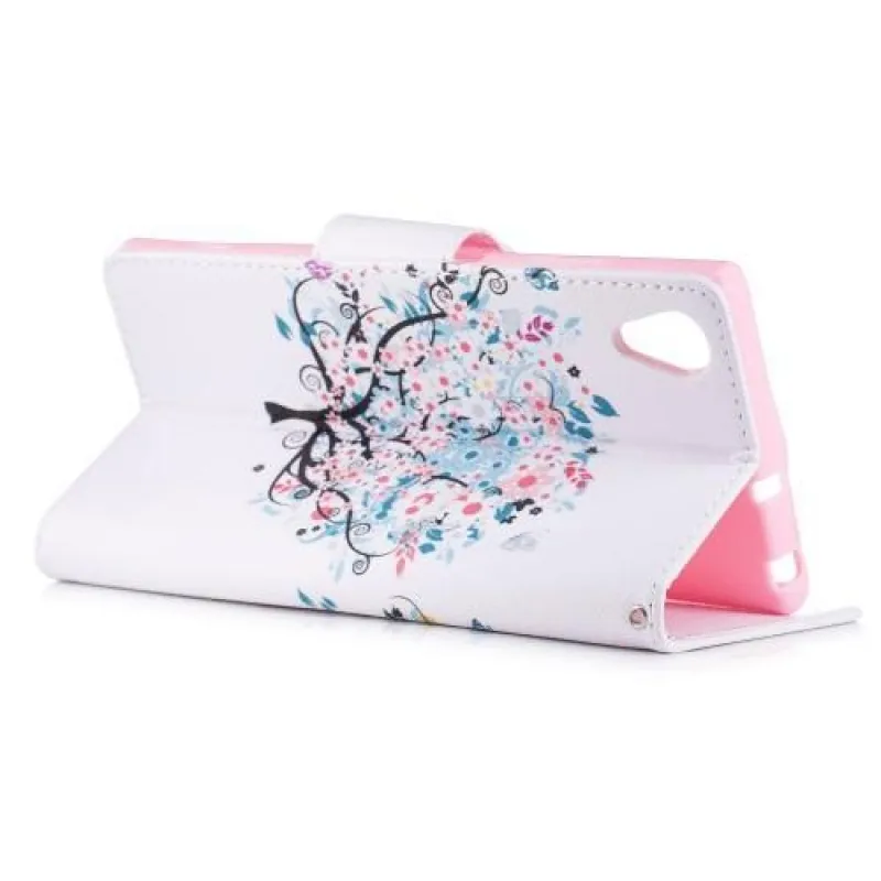Mintás PU bőr pénztárca tok Sony Xperia XA1 Plus-hoz - kék fa