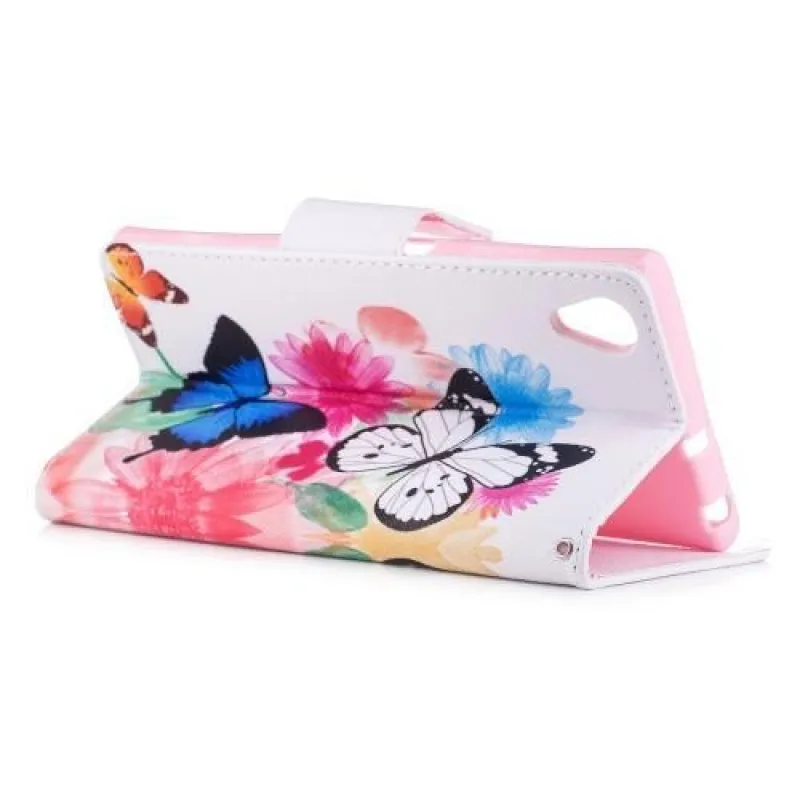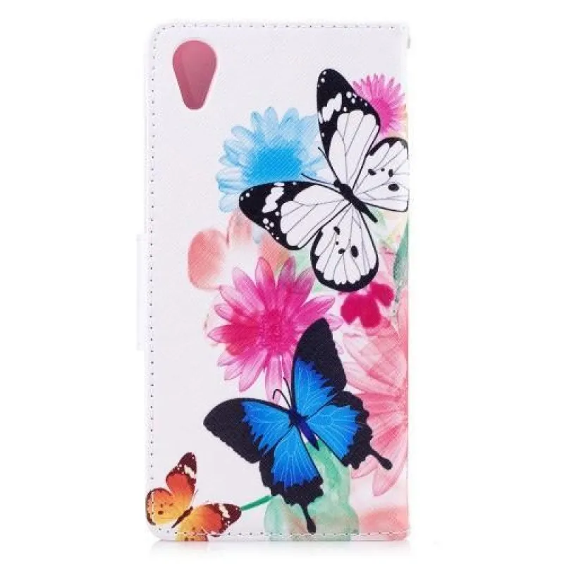 Mintás PU bőr pénztárca tok Sony Xperia XA1 Plus-hoz - pillangók és virágok