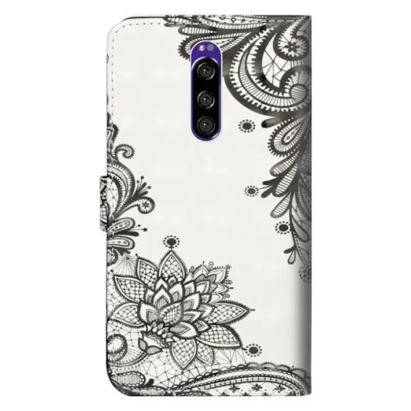 Mintás PU bőr tok Sony Xperia 1 - virágokhoz