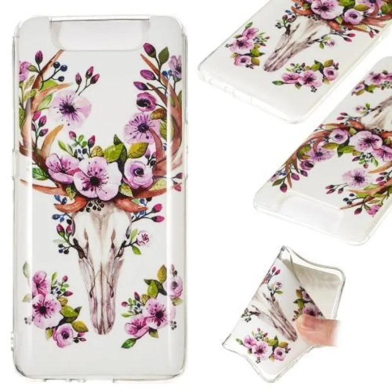 Mintás zselés tok mobil Samsung Galaxy A80 - virágos rénszarvas