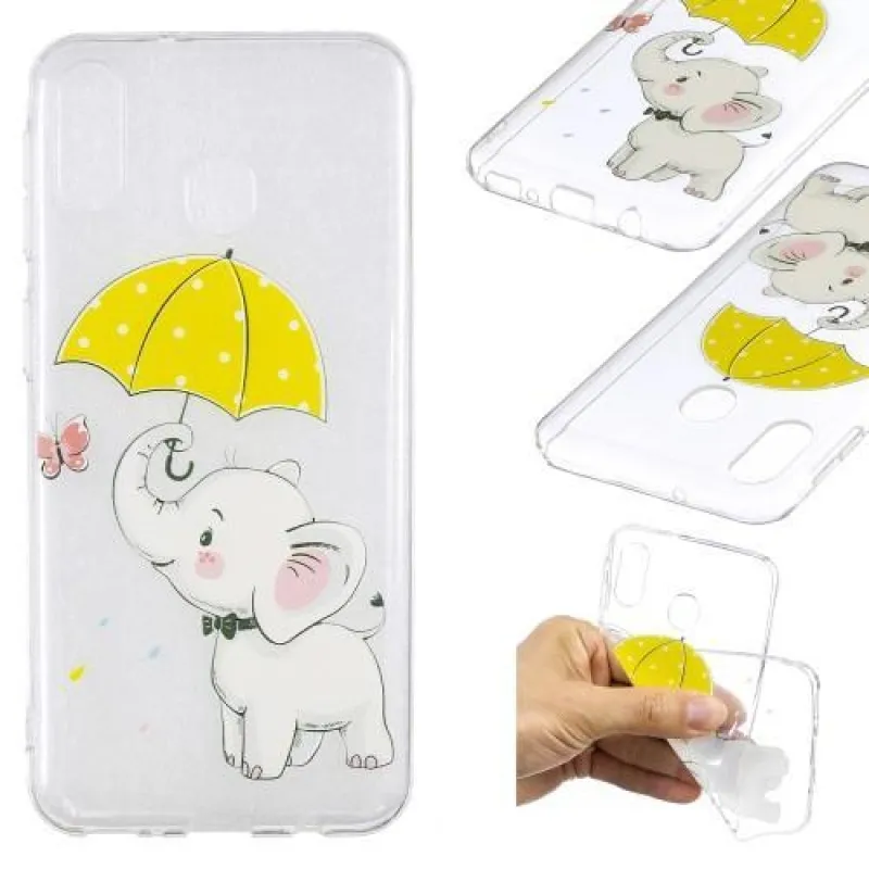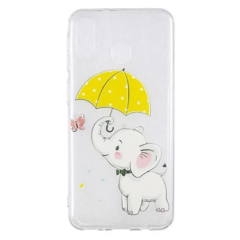 Mintás zselés tok Samsung Galaxy M20 készülékhez - elefánt és esernyő