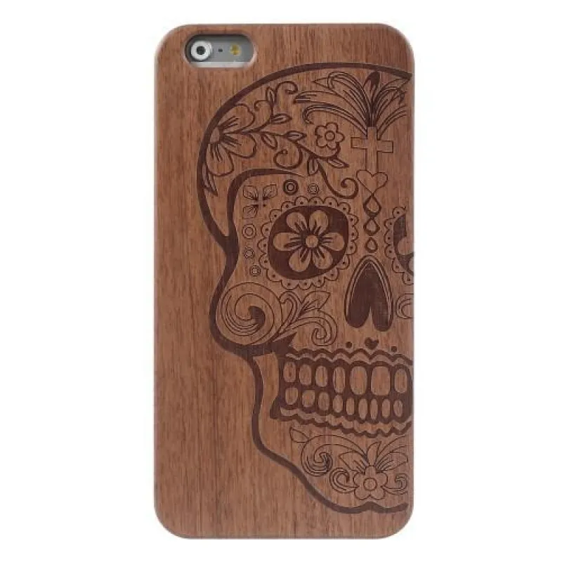 Misztikus műanyag tok fa hátlappal iPhone 6 és 6s készülékhez - koponya