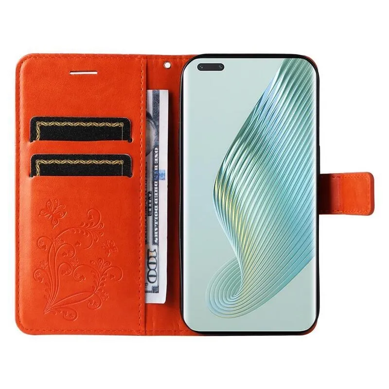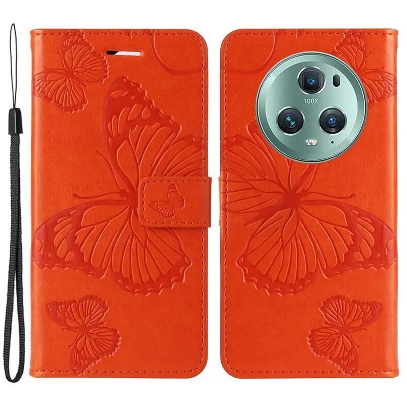 Nagy pillangó narancssárga pénztárca tok Honor Magic 5 Pro 5G számára