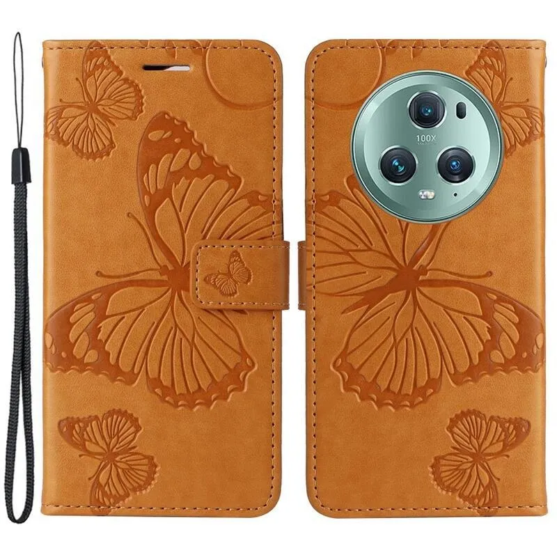 Nagy pillangó sárga pénztárca tok a Honor Magic 5 Pro 5G számára