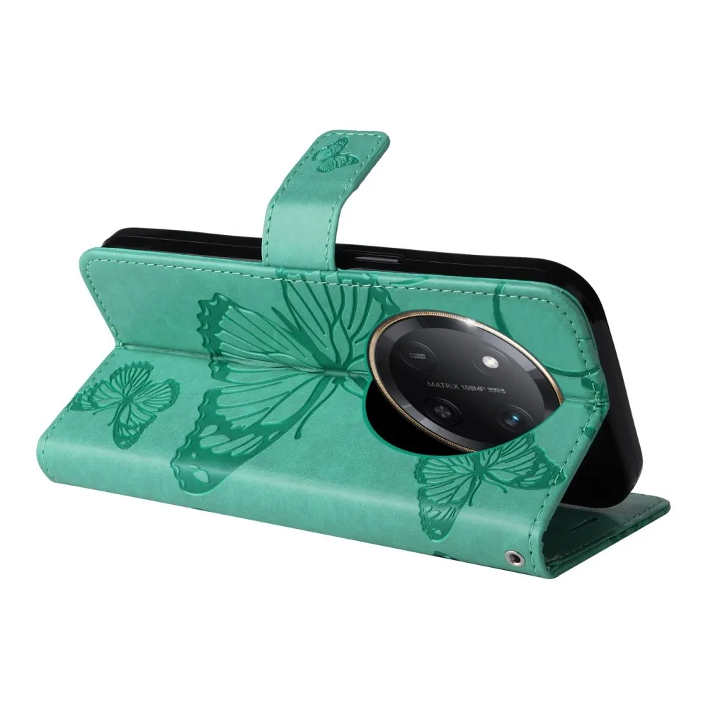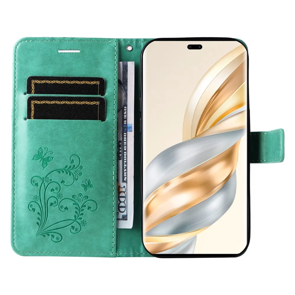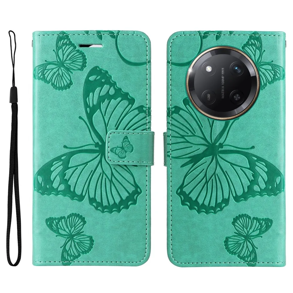 Kék-zöld pénztárca tok Big Butterfly a Honor Magic 7 Lite 5G számára