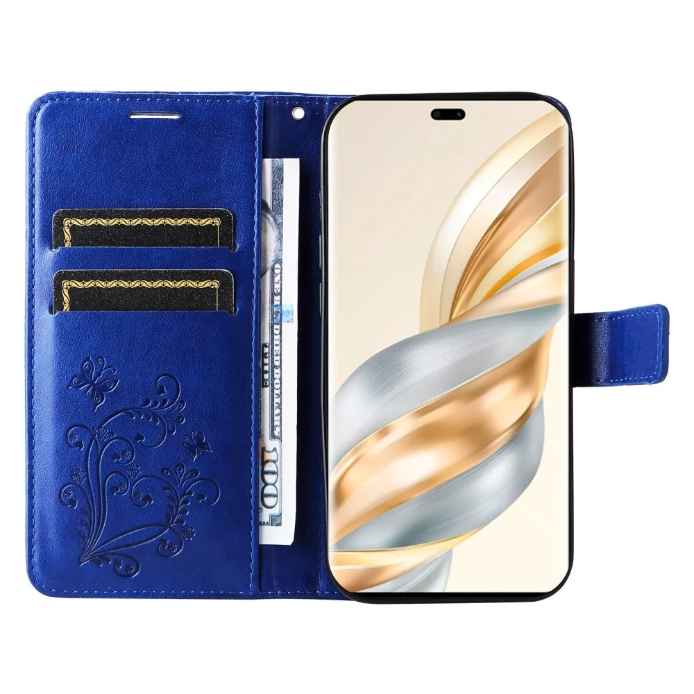 Kék pénztárca tok Nagy pillangó a Honor Magic 7 Lite 5G számára