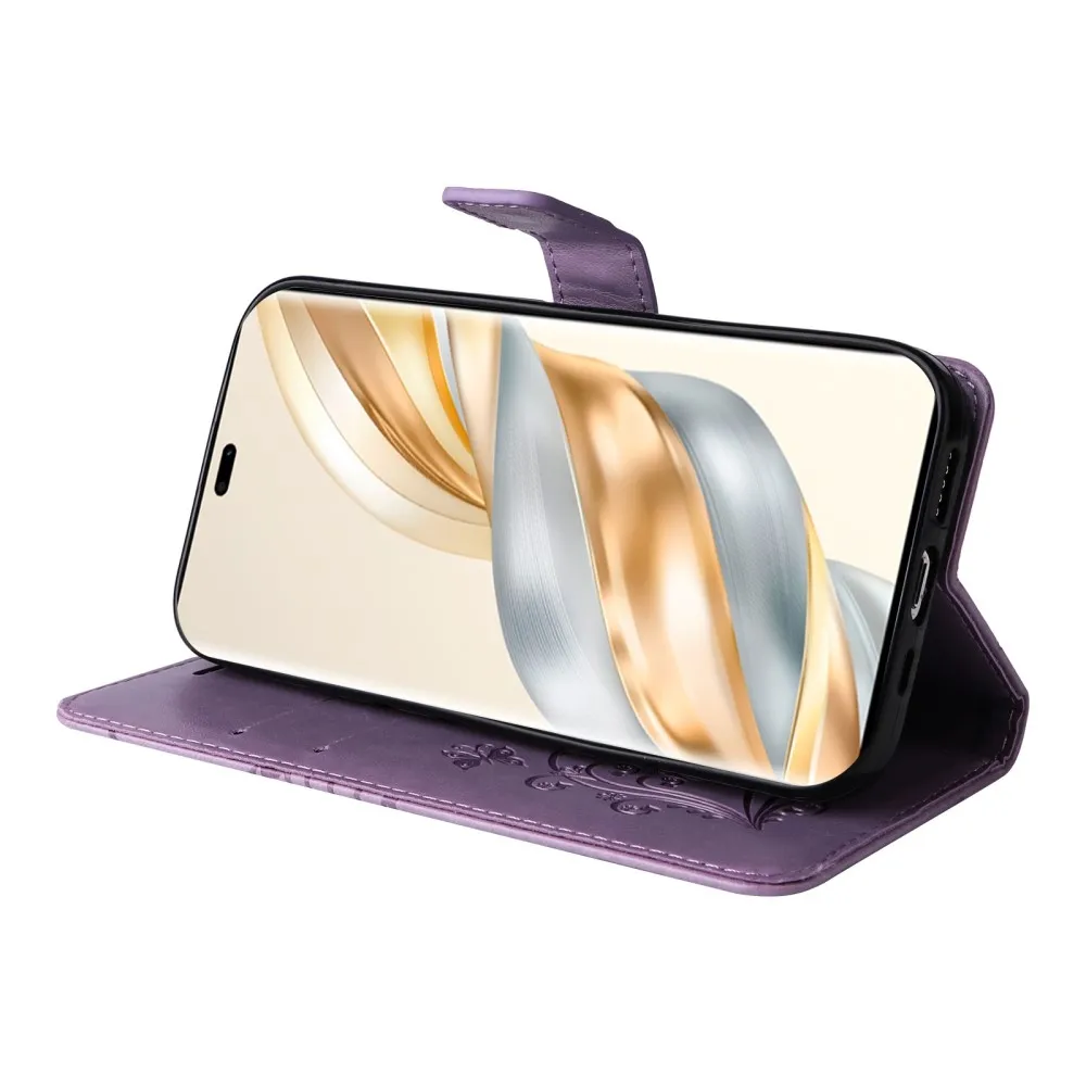 Nagy pillangó könyv tok a Honor Magic 7 Lite 5G számára - lila