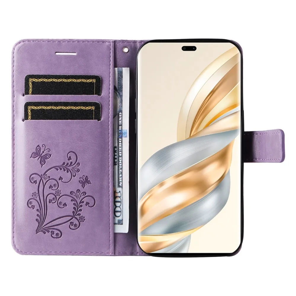 Lila nagy pillangó pénztárca tok Honor Magic 7 Lite 5G számára