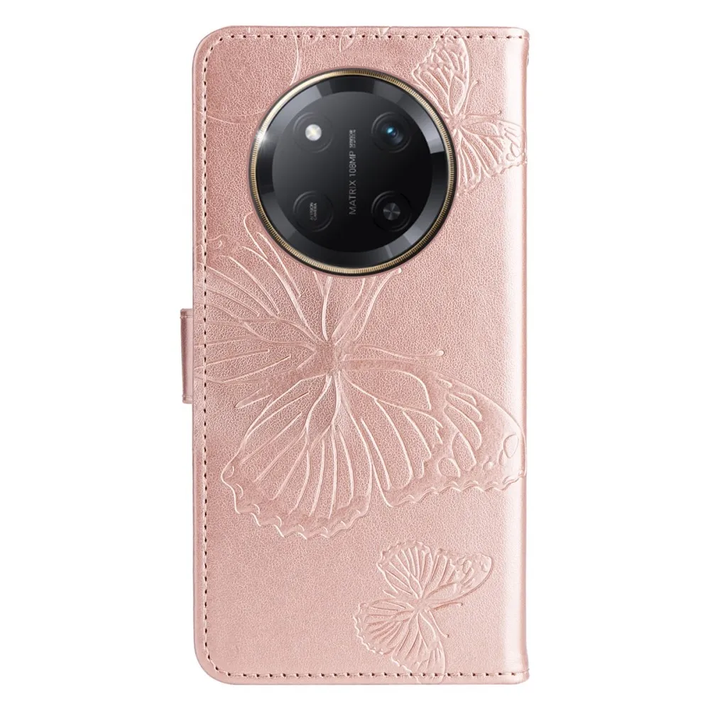 Nagy pillangó könyv tok a Honor Magic 7 Lite 5G számára - rózsa arany