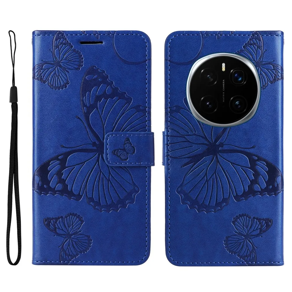 Kék pénztárca tok Big Butterfly a Honor Magic 7 Pro 5G számára