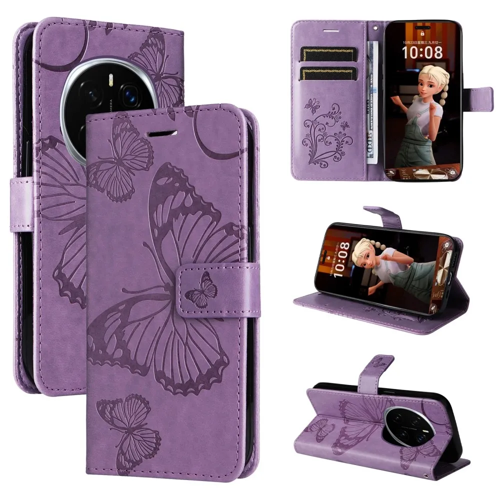 Lila nagy pillangó pénztárca tok Honor Magic 7 Pro 5G számára