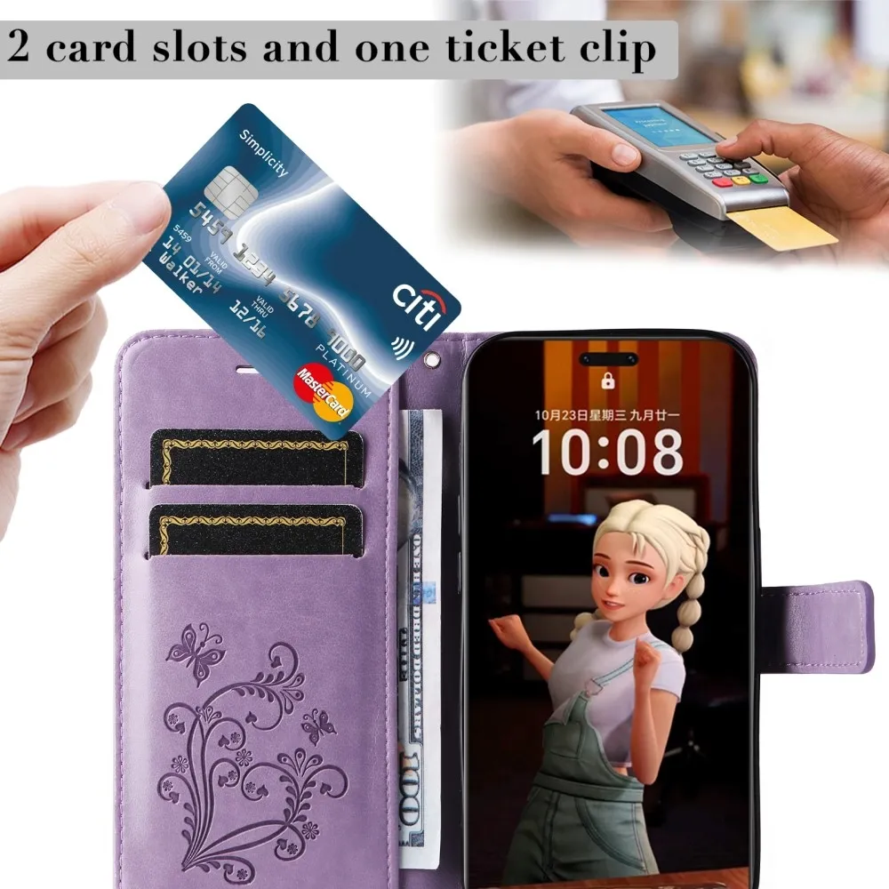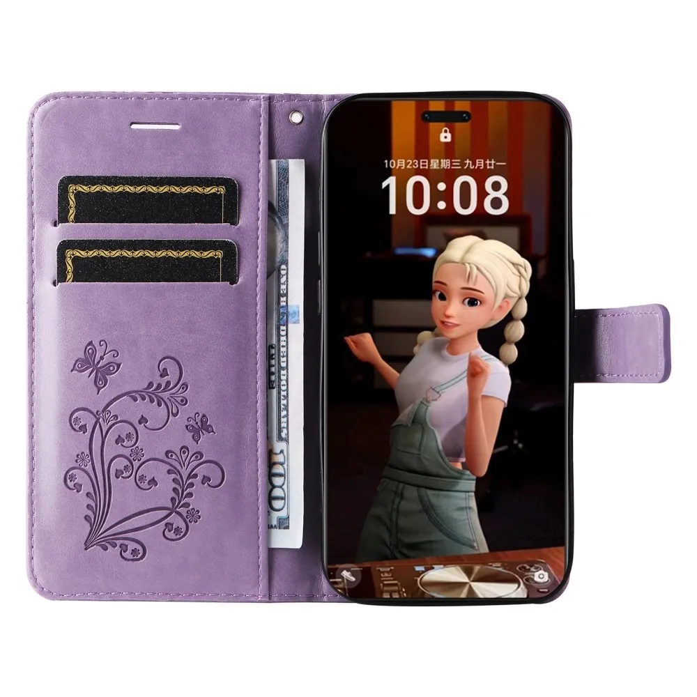 • A világoslila szín és az érdekes pillangóminta kiemeli az elegáns dizájnú tokot.