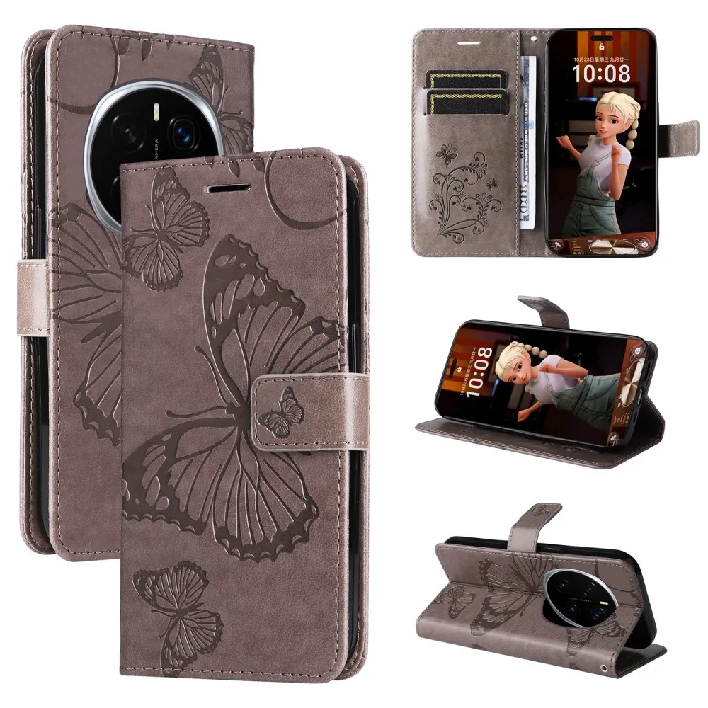 Szürke pénztárca tok Big Butterfly a Honor Magic 7 Pro 5G számára