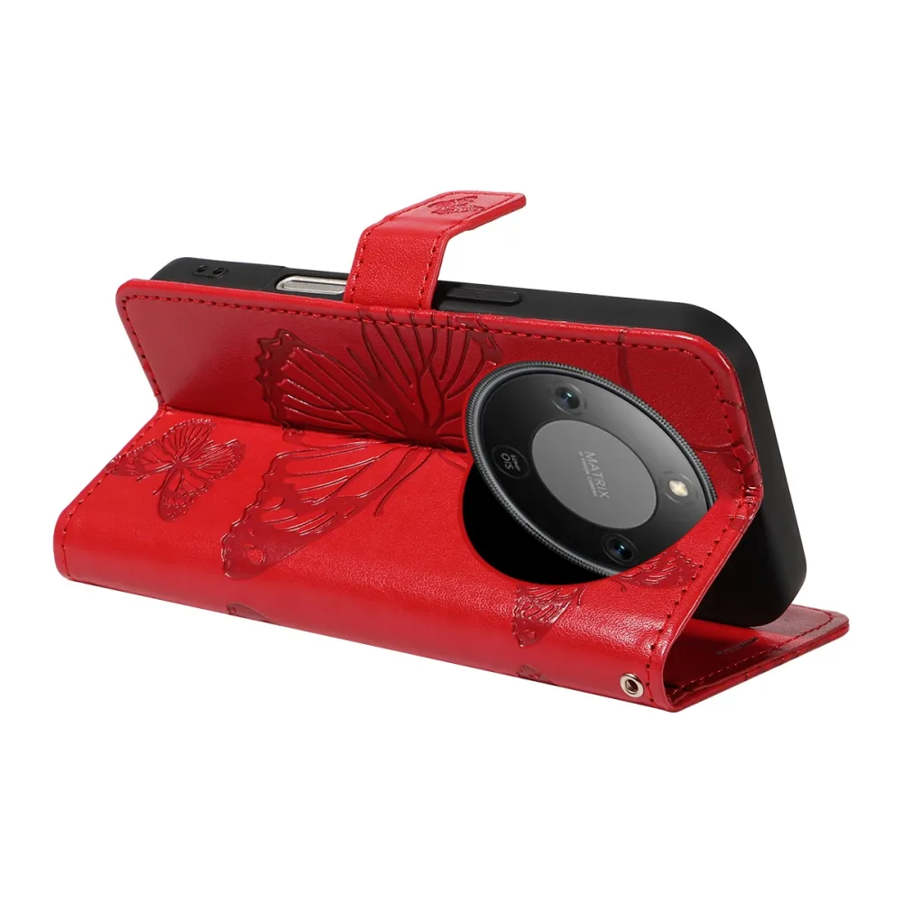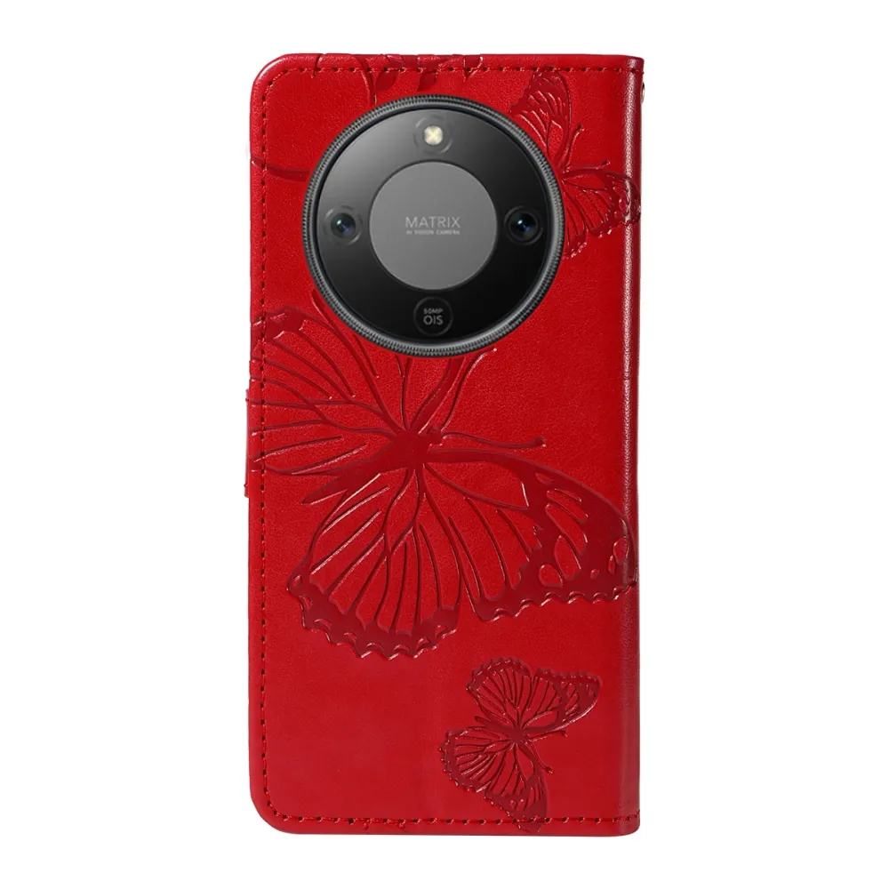 Nagy pillangó könyv tok a Honor Magic 8 Lite 5G számára - piros