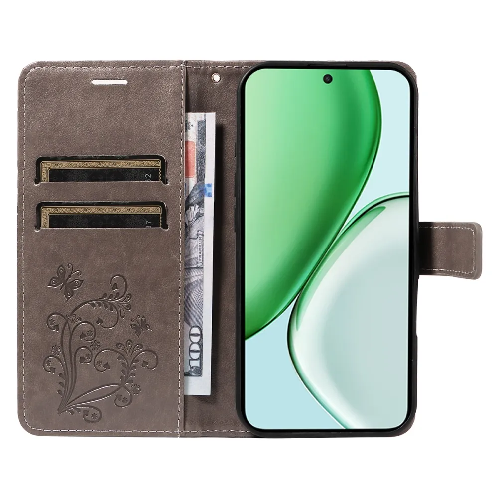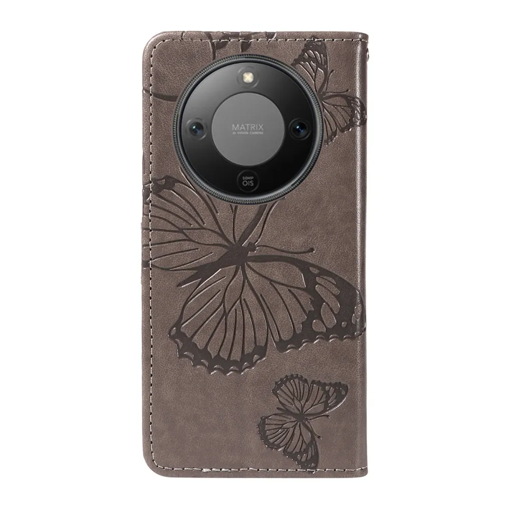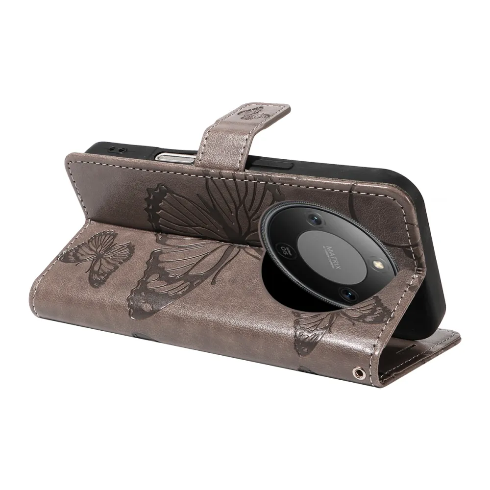 Nagy pillangó könyv tok a Honor Magic 8 Lite 5G számára - szürke