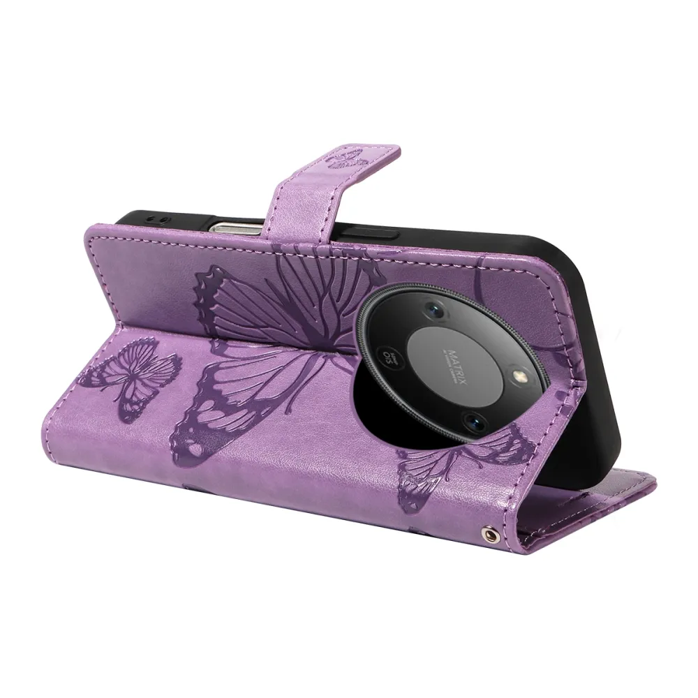 Nagy pillangó könyv tok a Honor Magic 8 Lite 5G számára - világos lila