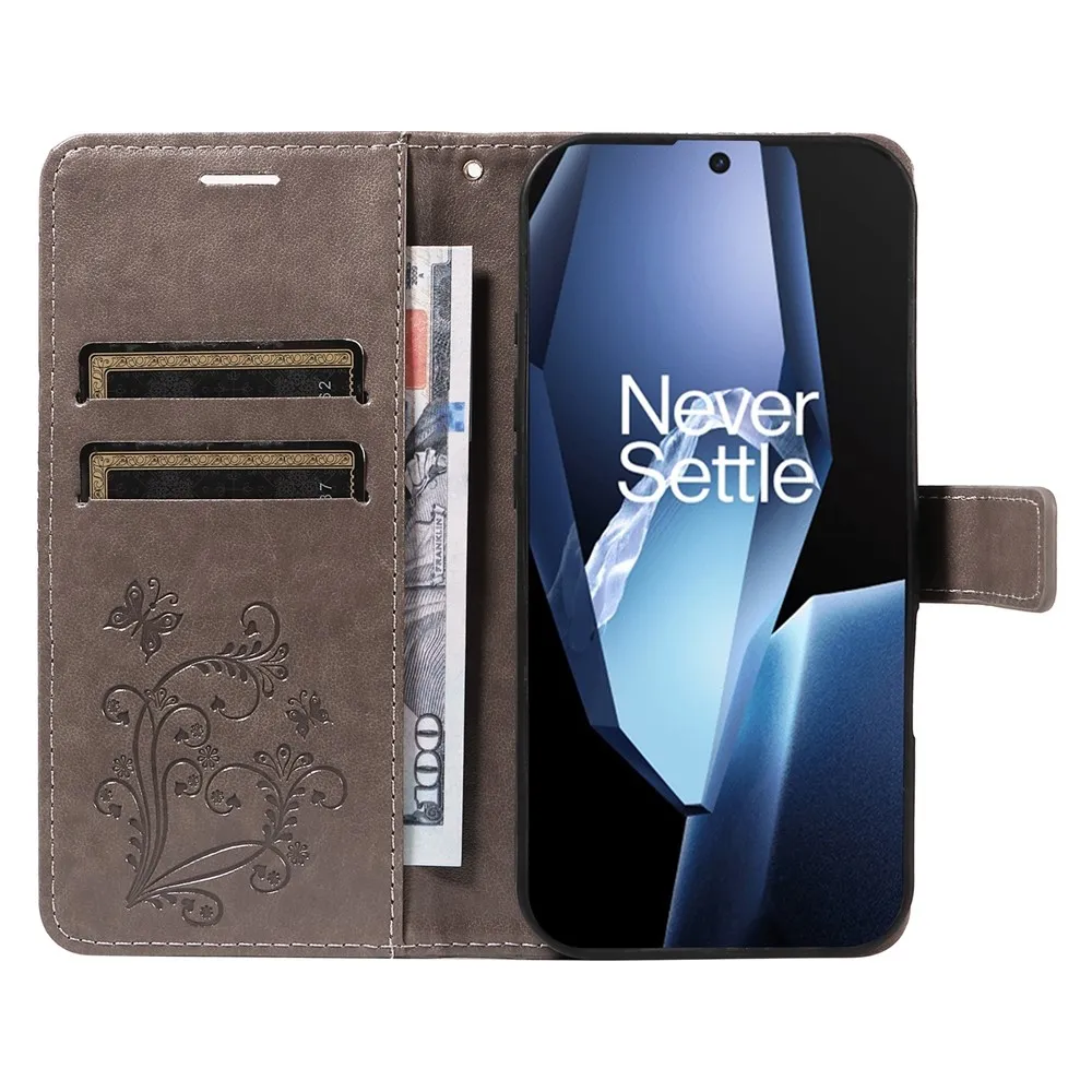 Nagy pillangó könyv tok a OnePlus 13R 5G számára - szürke