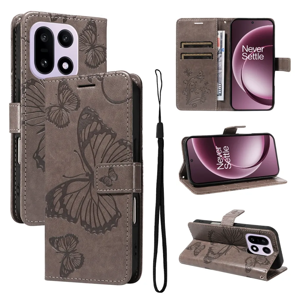 Nagy pillangó könyv tok a OnePlus 15 5G-hez - szürke
