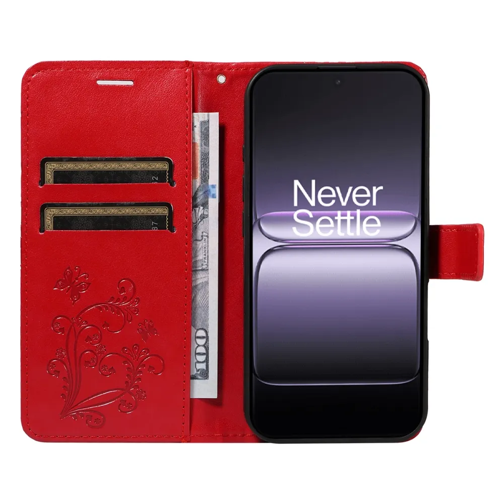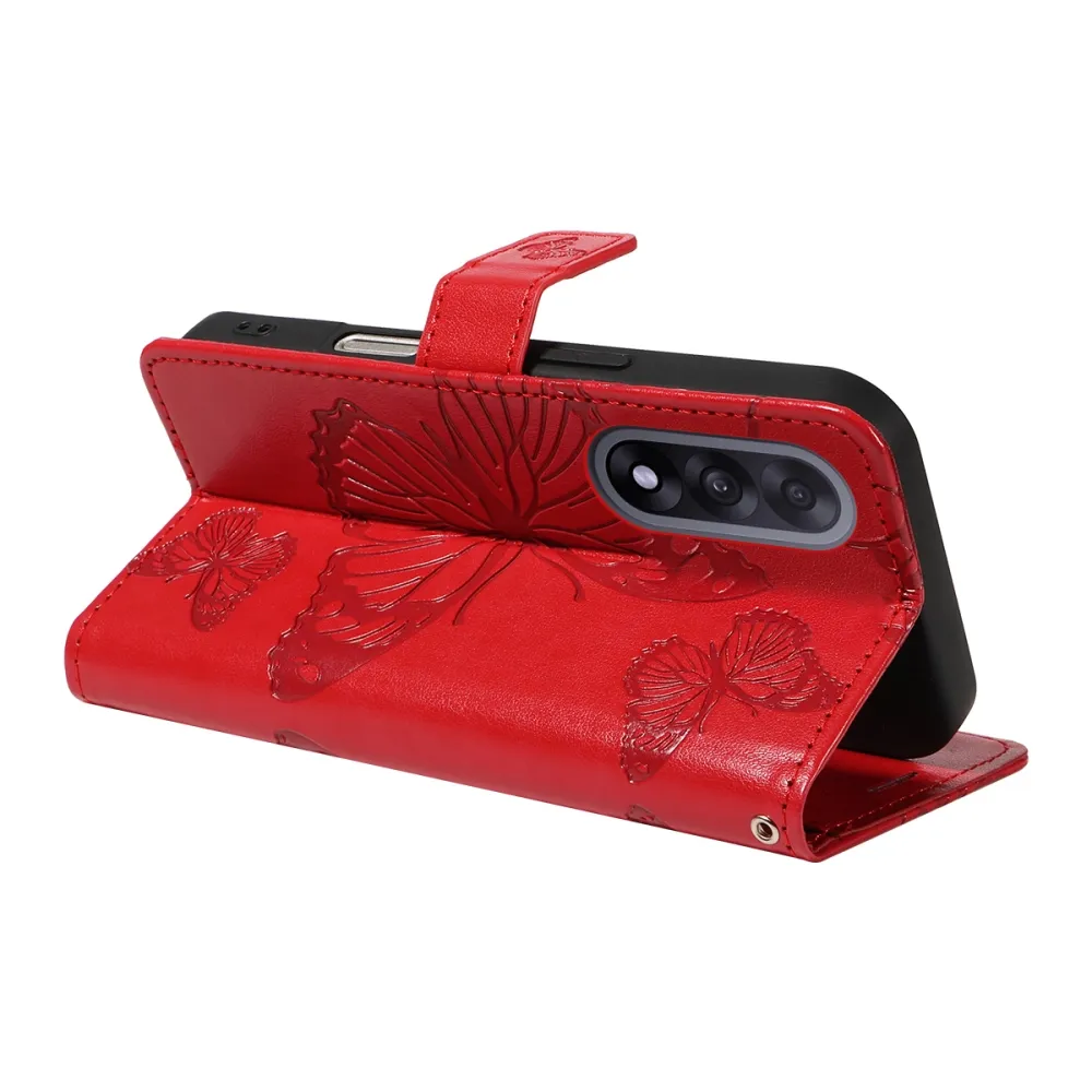 Nagy pillangó könyv tok a OnePlus Nord 5 5G számára - piros