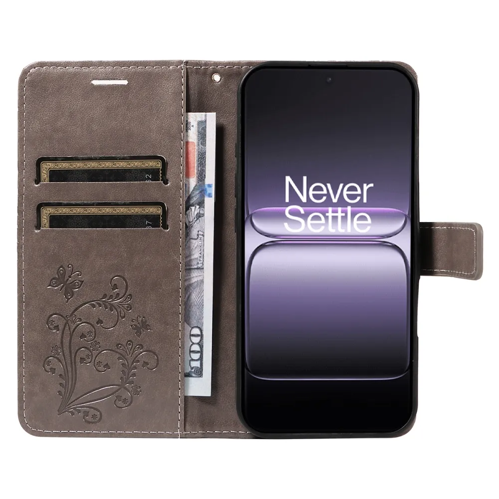Nagy pillangó könyv tok a OnePlus Nord 5 5G számára - szürke