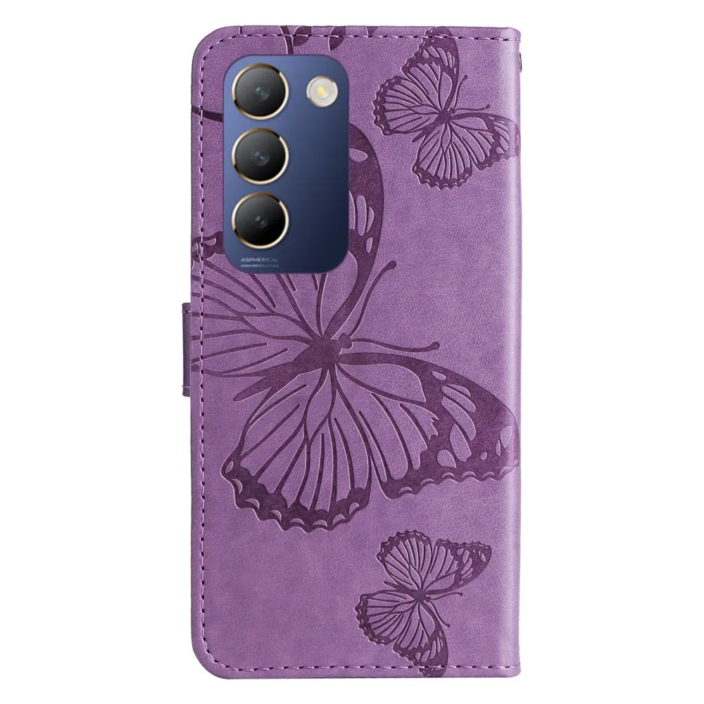 Világos lila Big Butterfly pénztárca tok Vivo V40 SE 4G/5G számára