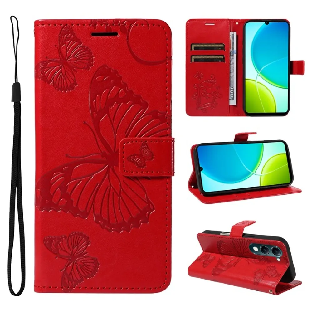 Piros pénztárca tok Nagy pillangó a Vivo Y29s 5G számára