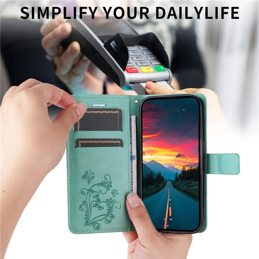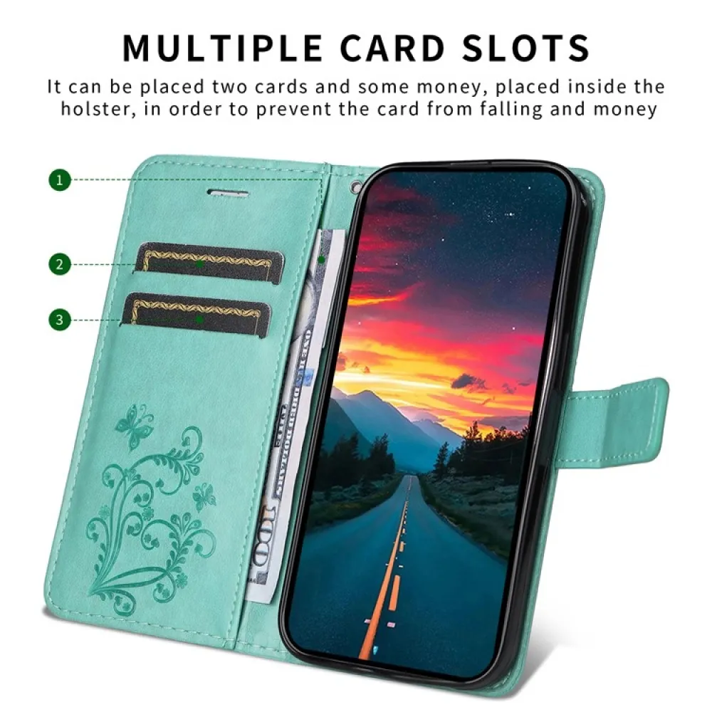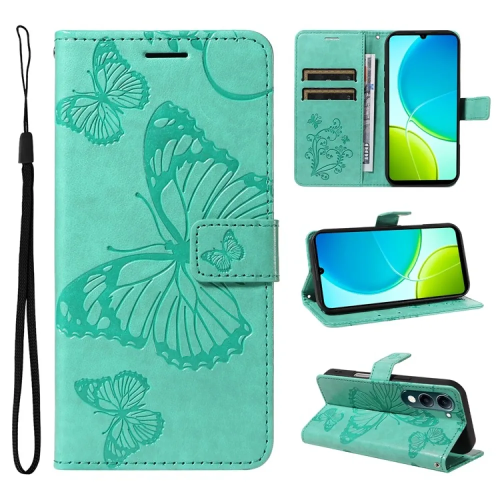 Kék-zöld Nagy pillangó pénztárca tok a Vivo Y29s 5G-hez