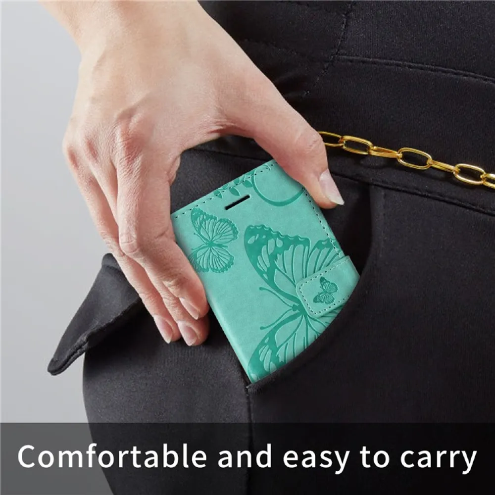 • A kékeszöld szín és az érdekes pillangóminta kiemeli az elegáns dizájnú tokot.