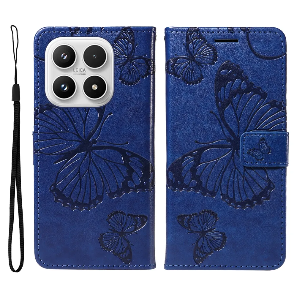 Kék pénztárca tok Big Butterfly a Xiaomi 17 számára