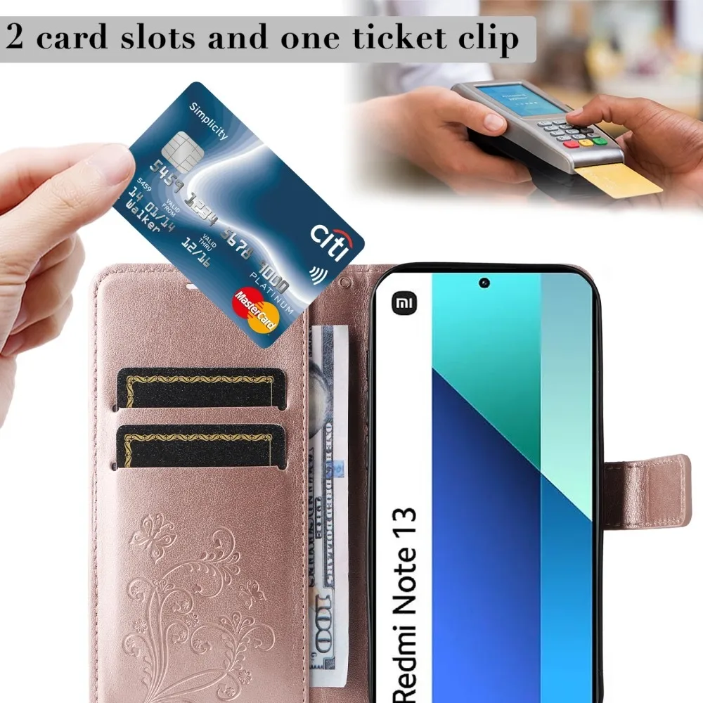 Rózsa arany pénztárca tok Big Butterfly a Xiaomi Redmi Note 13-hoz