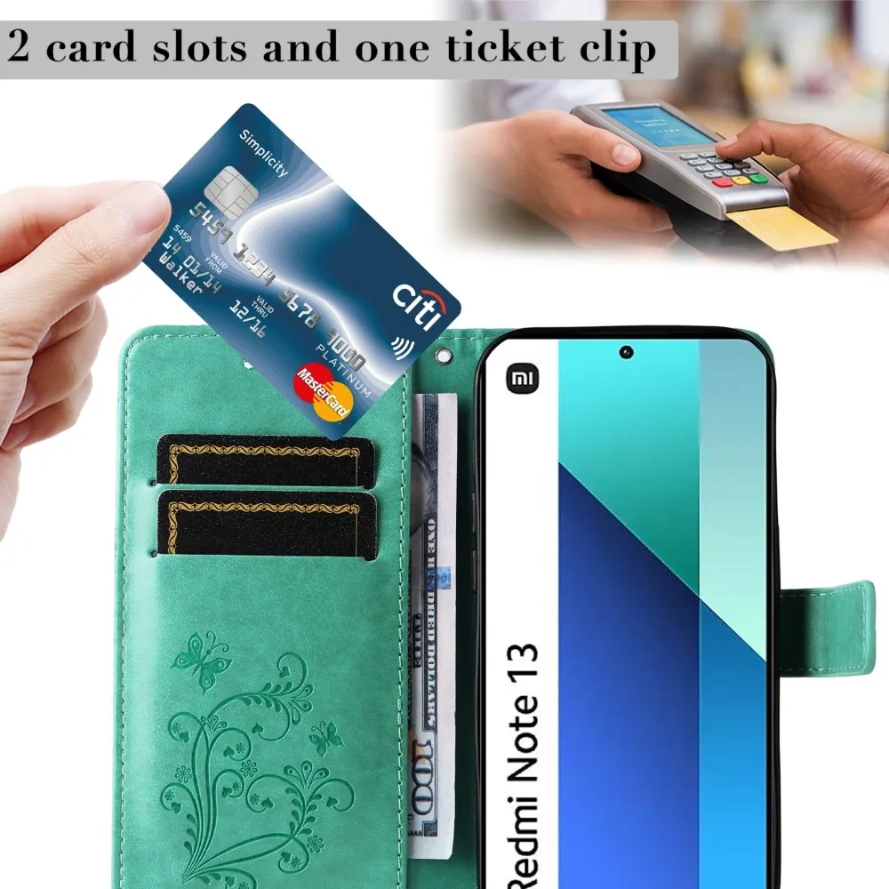 Kék-zöld pénztárca tok Big Butterfly a Xiaomi Redmi Note 13-hoz
