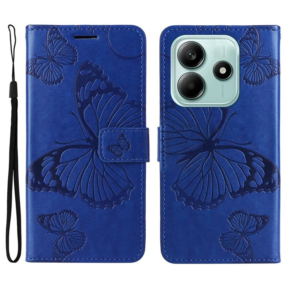 Kék pénztárca tok Nagy pillangó Xiaomi Redmi Note 14 5G számára