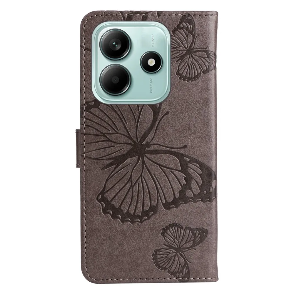Szürke pénztárca tok Nagy pillangó Xiaomi Redmi Note 14 5G számára