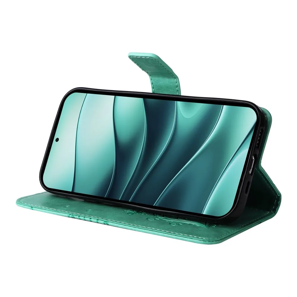 Nagy pillangó könyv tok a Xiaomi Redmi Note 14 5G-hez - teal színű