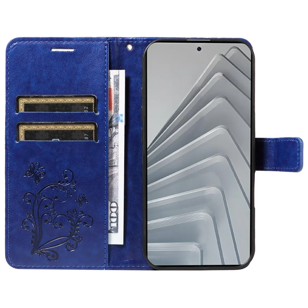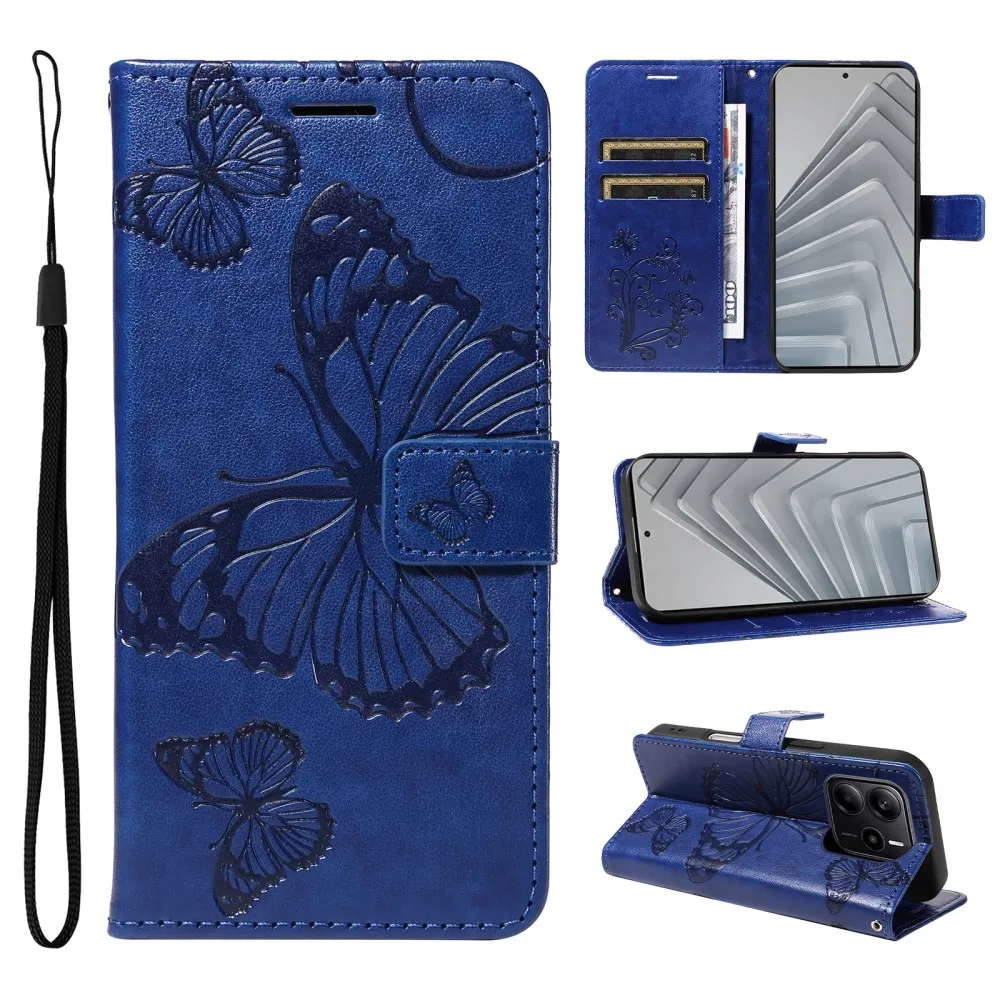 Kék pénztárca tok Big Butterfly a Xiaomi Redmi Note 14-hez
