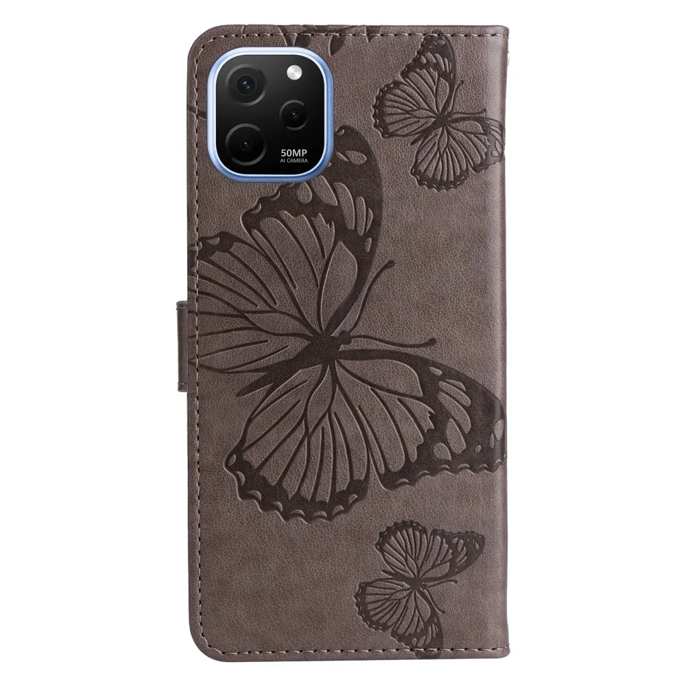 Szürke pénztárca tok Nagy pillangó a Huawei Nova Y61-en