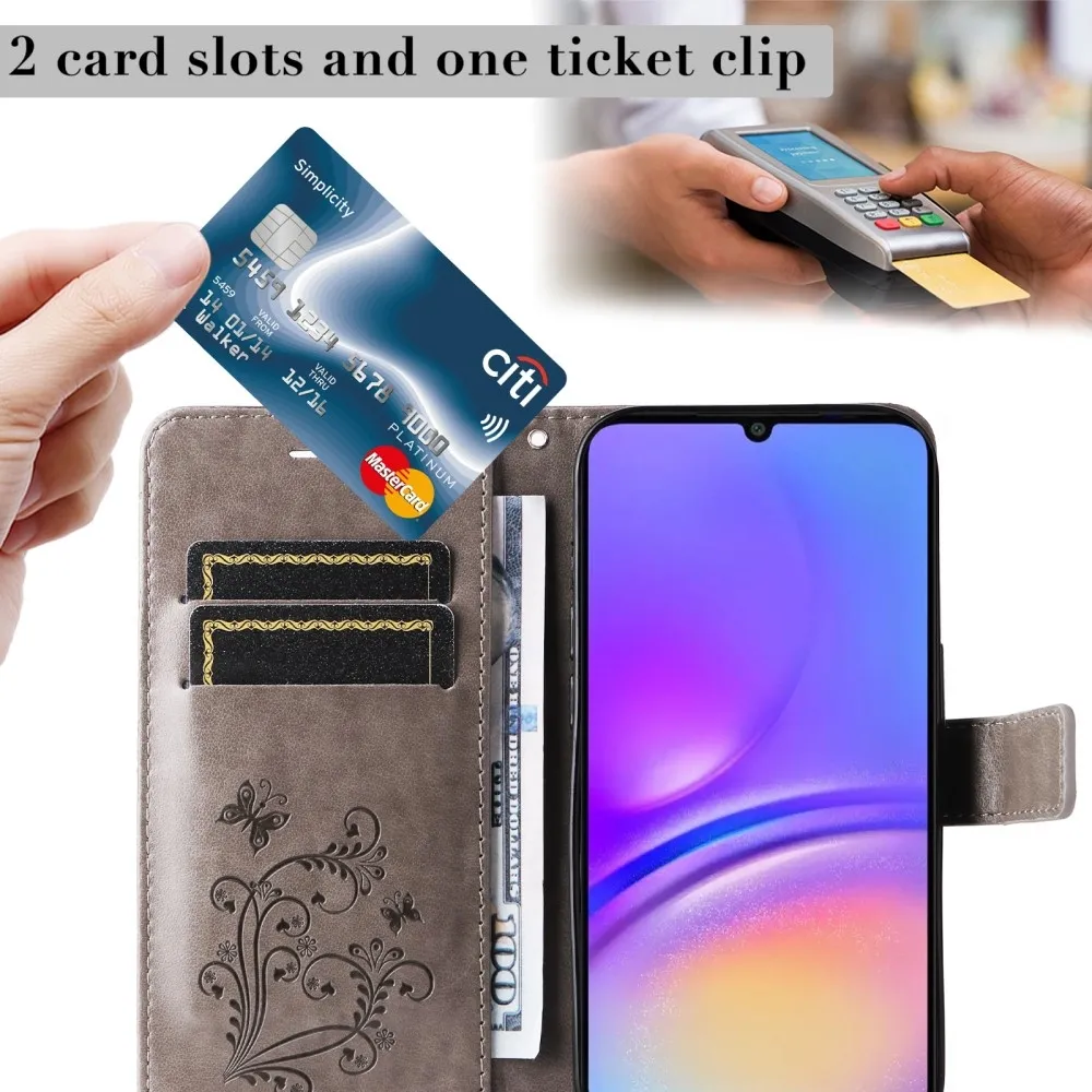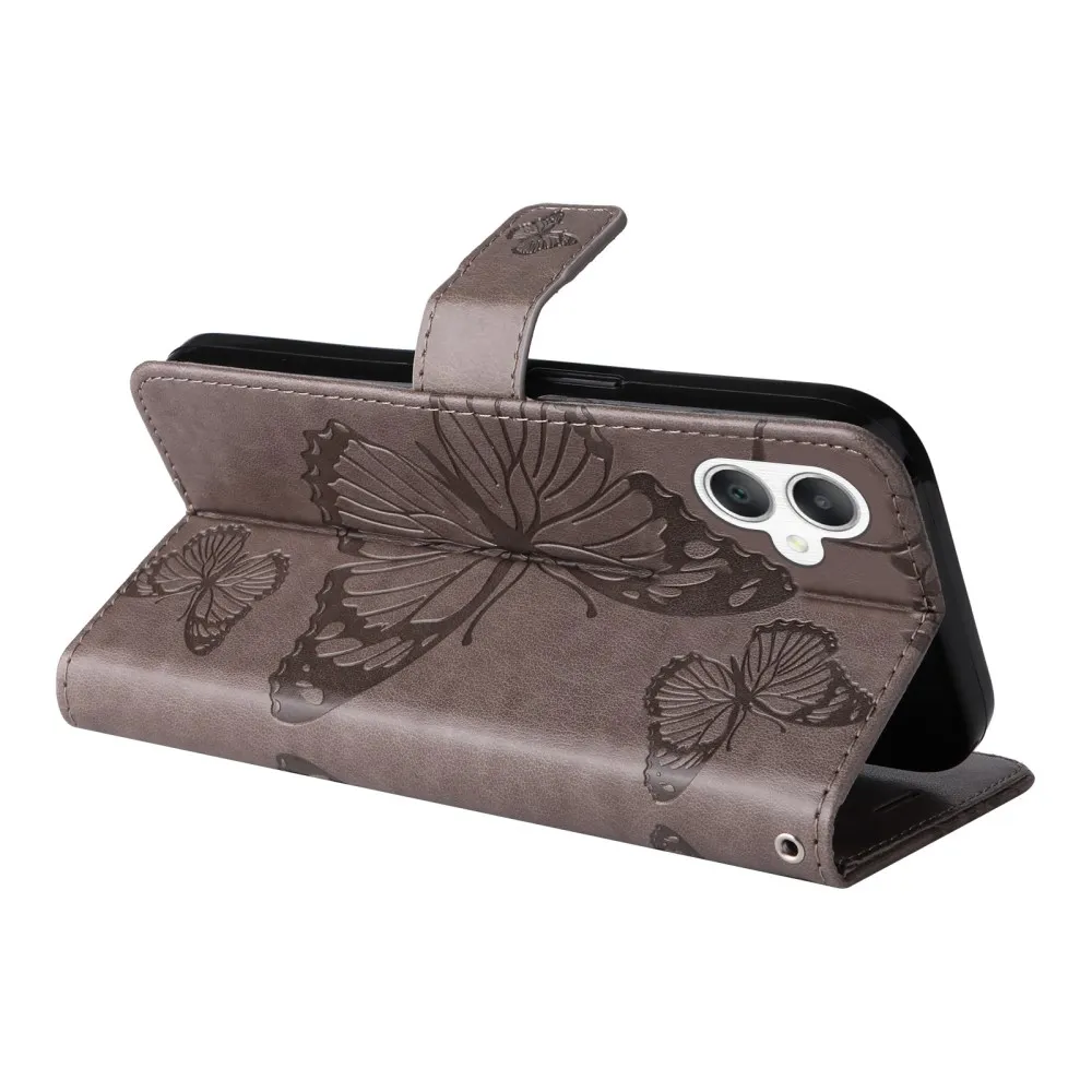 Szürke pénztárca tok Nagy pillangó Samsung Galaxy A06 4G számára
