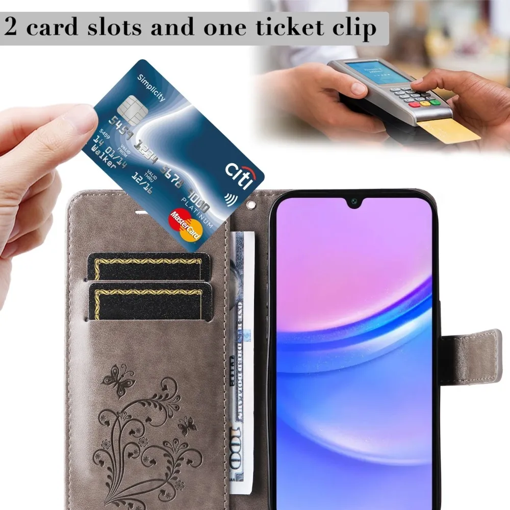 Szürke pénztárca tok Nagy pillangó Samsung Galaxy A16 4G/5G/A26 5G számára