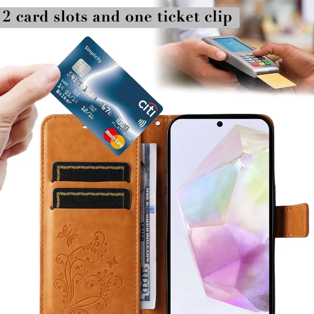 Sárga pénztárca tok Nagy pillangó Samsung Galaxy A36 5G számára